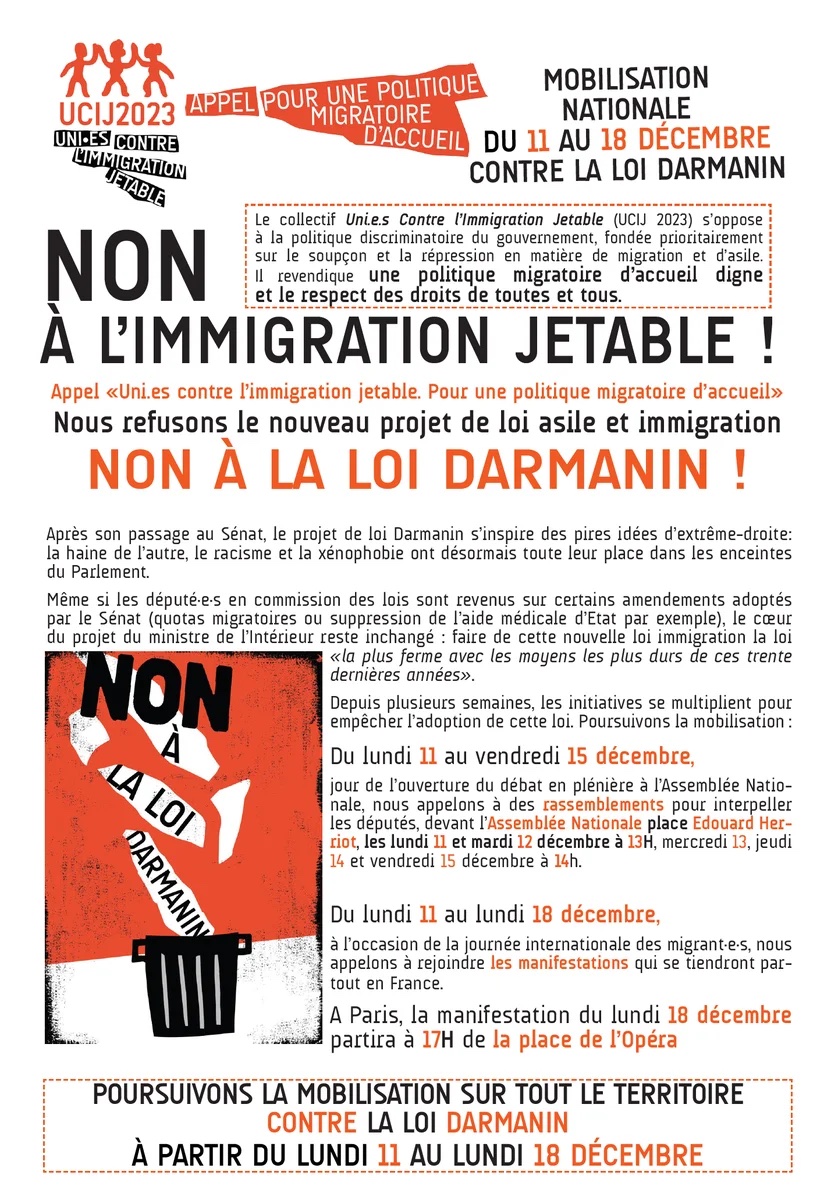A l’appel d’un collectif d’associations et de syndicats dont la FSU, l’UCIJ 2023, une semaine de mobilisation est organisée entre le 11 et le 18 décembre