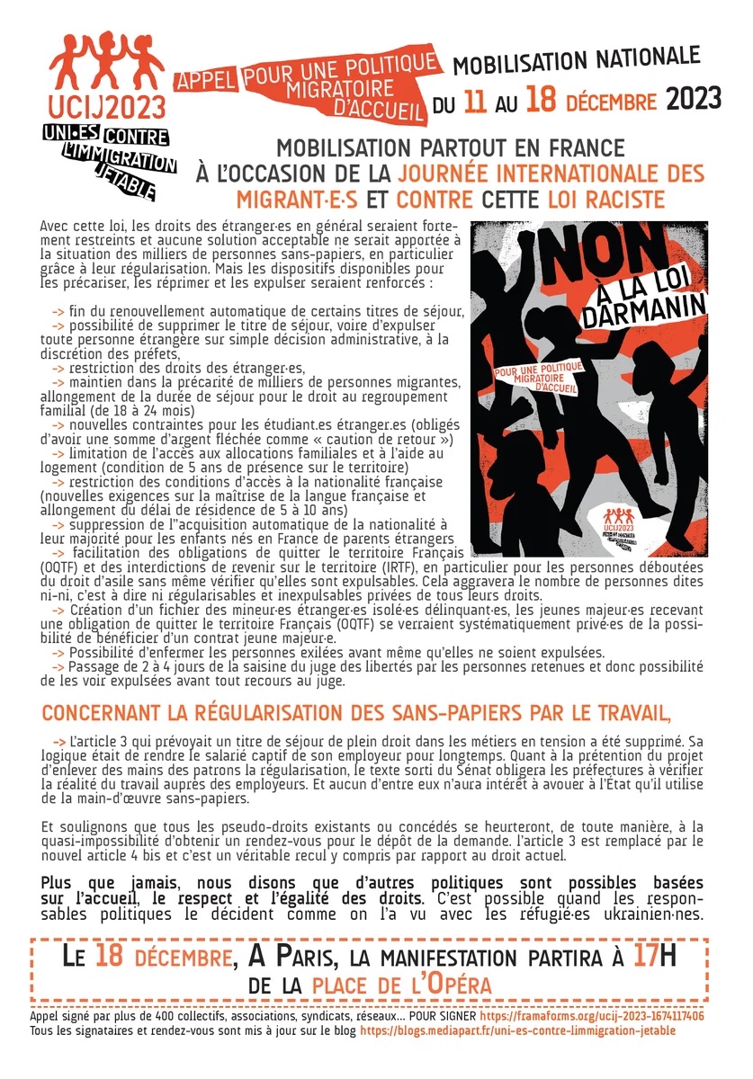Lire ci-dessous l’appel du collectif UCIJ 2023